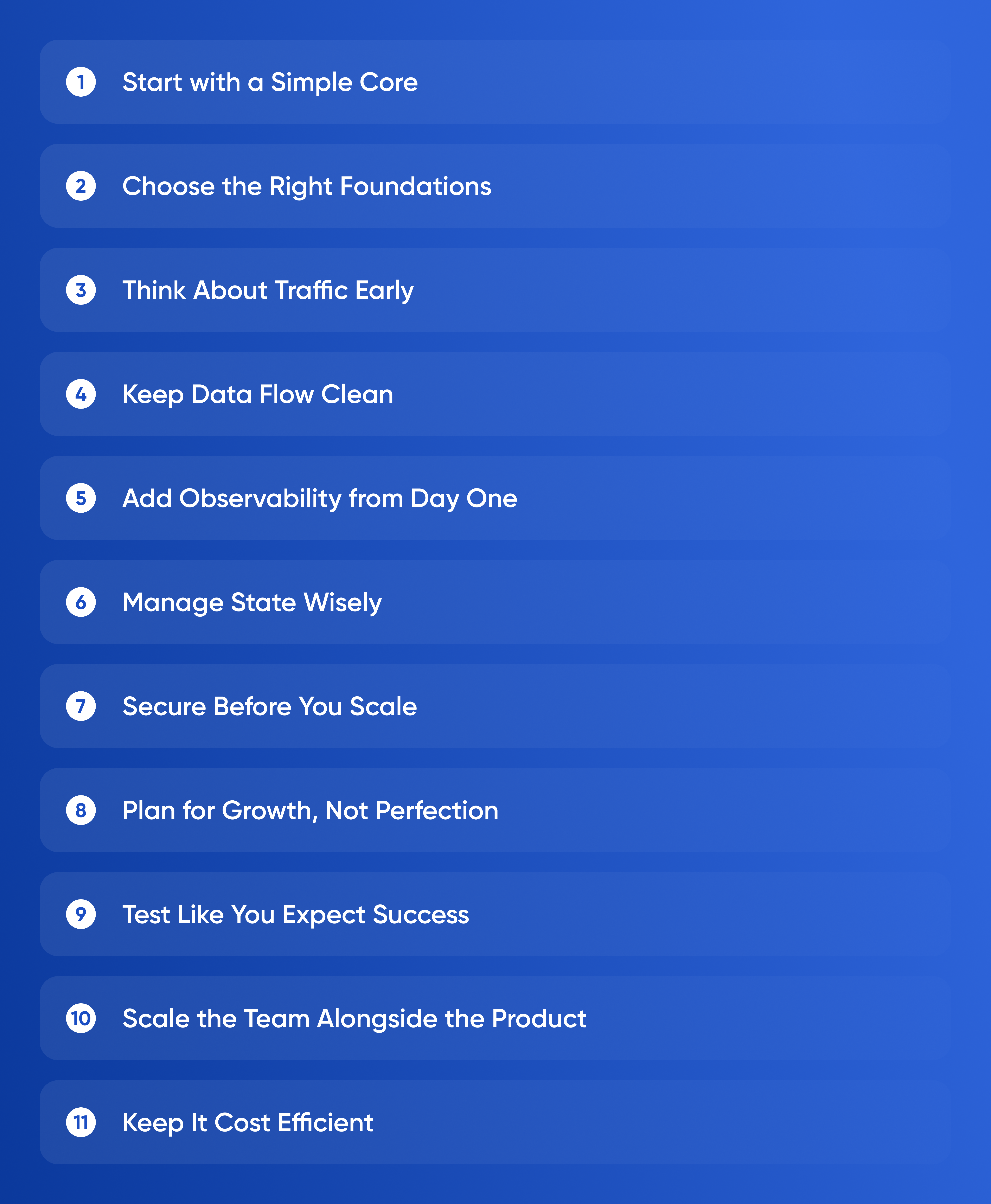 A scalable app is not defined by complex architecture. It is defined by clear ownership of data, simple paths for requests, and observability that keeps problems visible. Start with a modular monolith, prepare for separation, monitor everything, and let your product grow naturally. The founders who plan for clarity instead of complexity are the ones whose apps survive the climb from zero to one hundred thousand users.